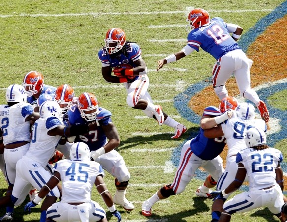Notes: Kentucky received $475,000 to come to Gainesville and play...Trey Burton did not play after all 500 Kentucky football fans signed a petition banning him from playing against the Wildcats...Dominique Easley sat out with a swollen dick from dragging it around...Jared Lorenzen sat at home with a swollen body from years of a poor diet and karma...Attendance was 87,102. Only one Kentucky fan attended and he was camping outside the O'Connell Center for the Wildcats trip to Gainesville on March 9, 2013...Next game: Oct. 6 vs. LSU at home. Be sure to wear your tinfoil hat to accommodate Les Miles. Kickoff is at it hasn't been announced o'clock and will be televised on The Fuck If I Know Network.